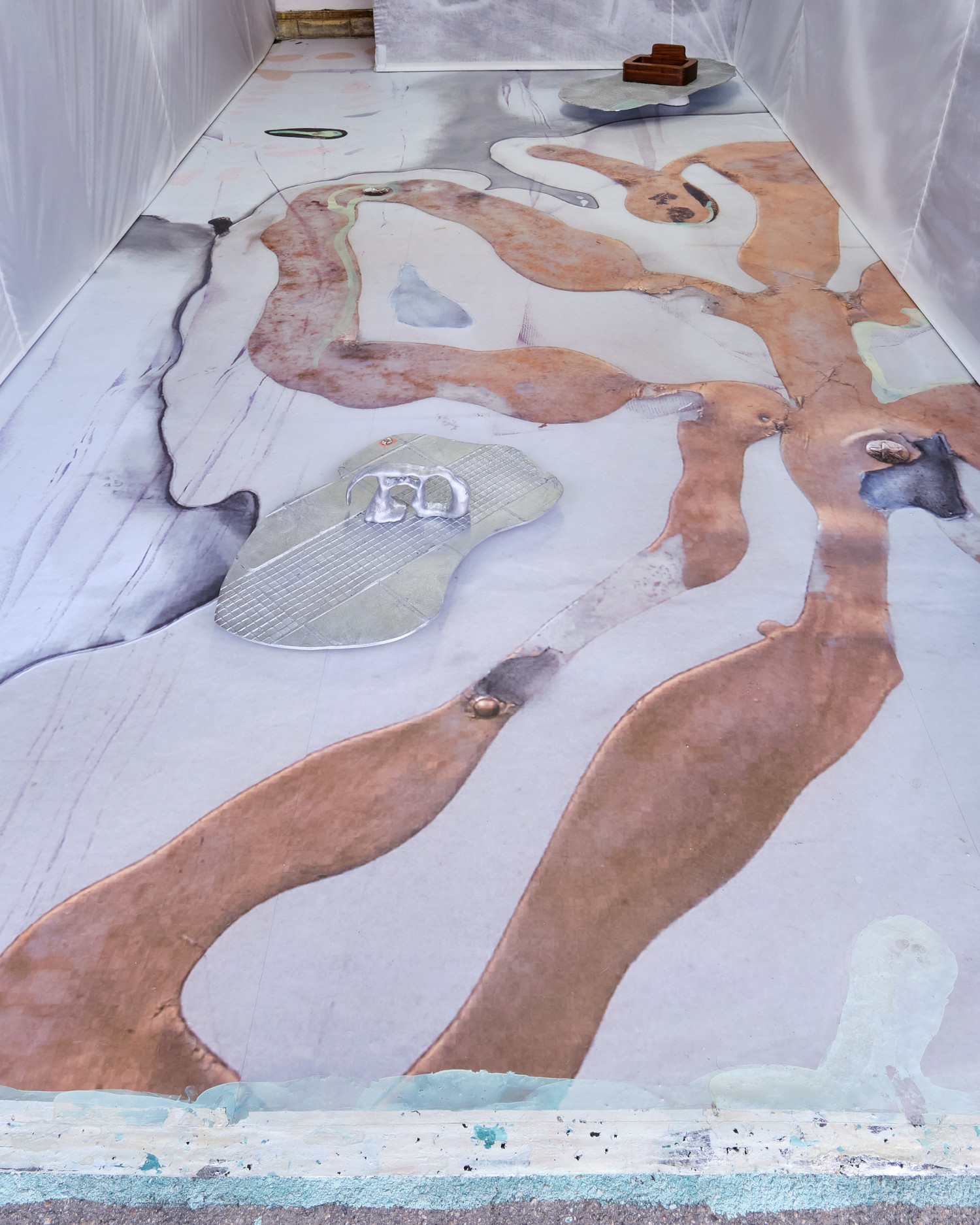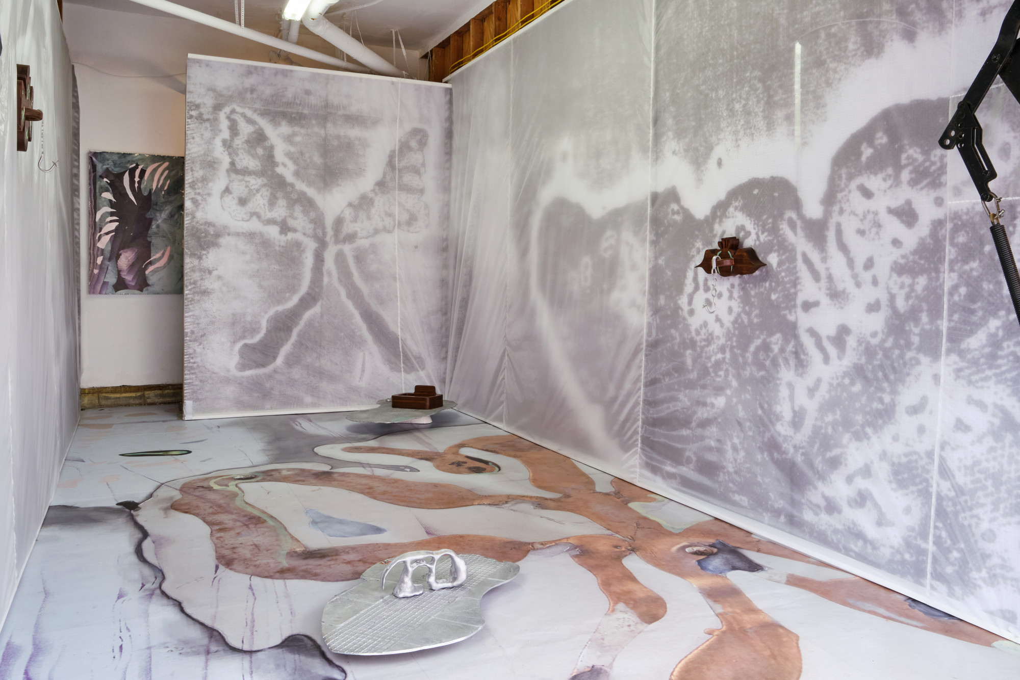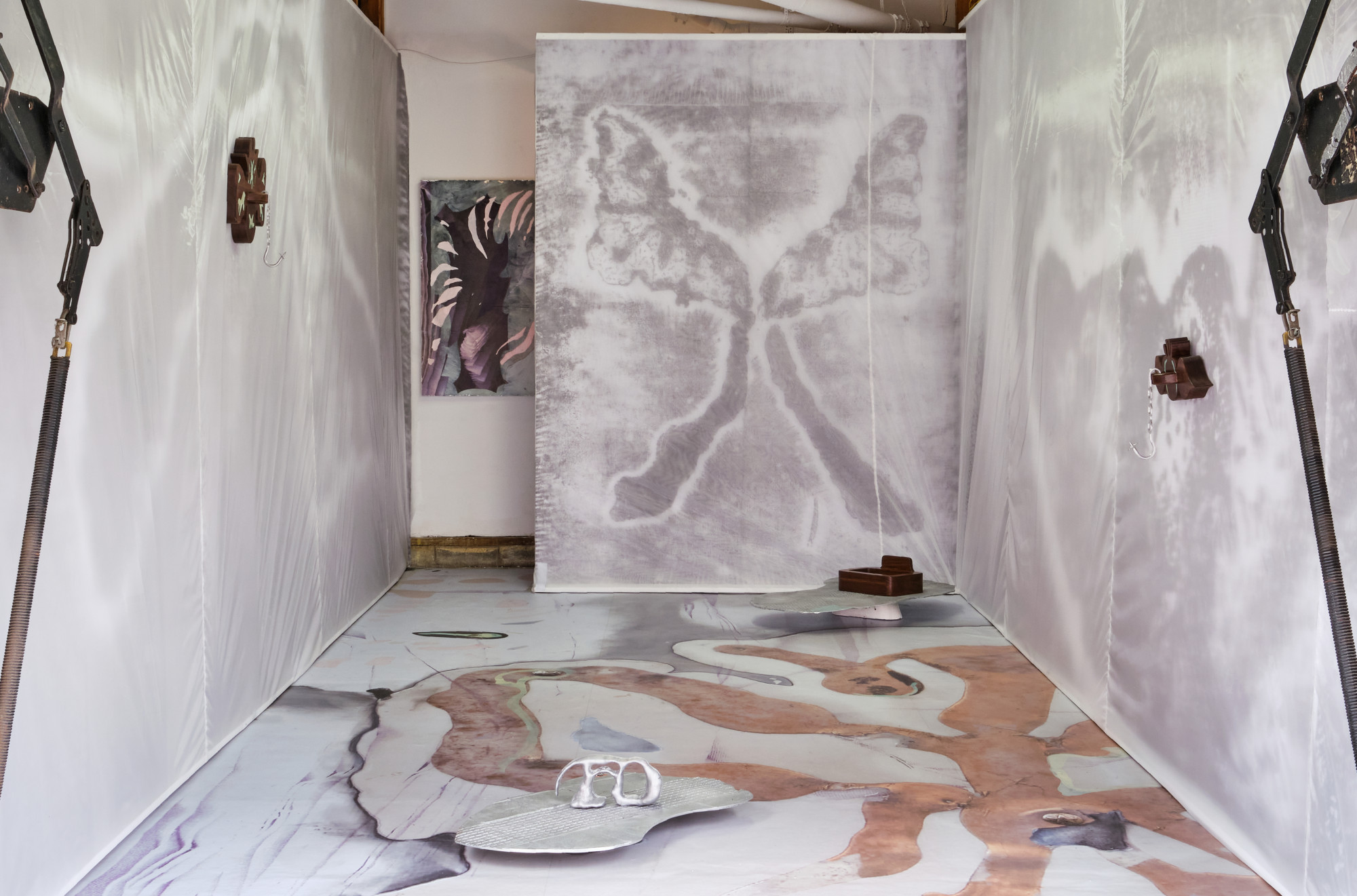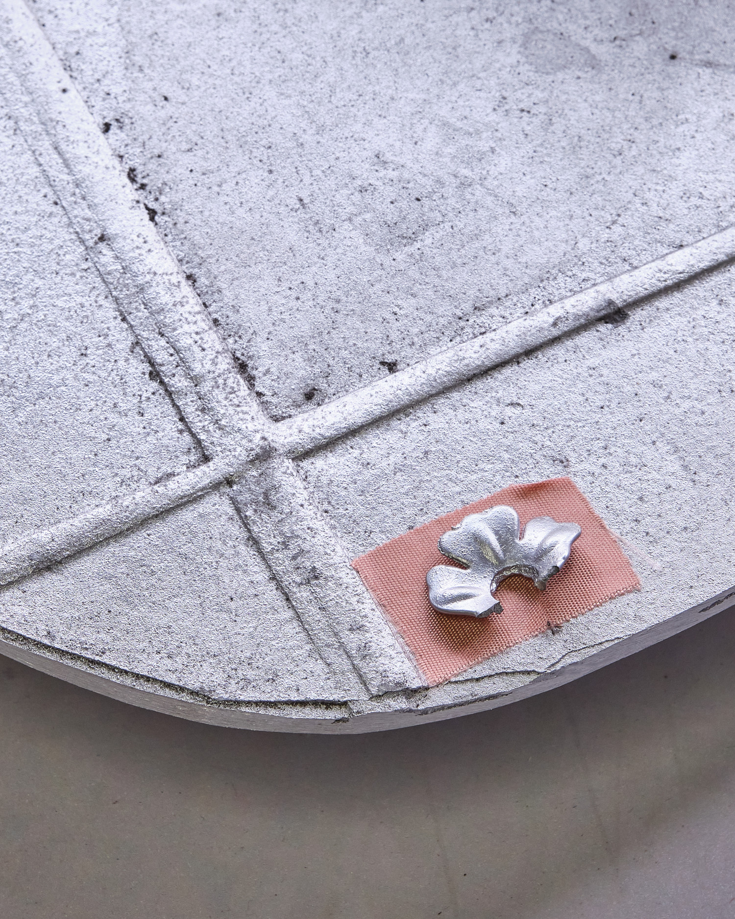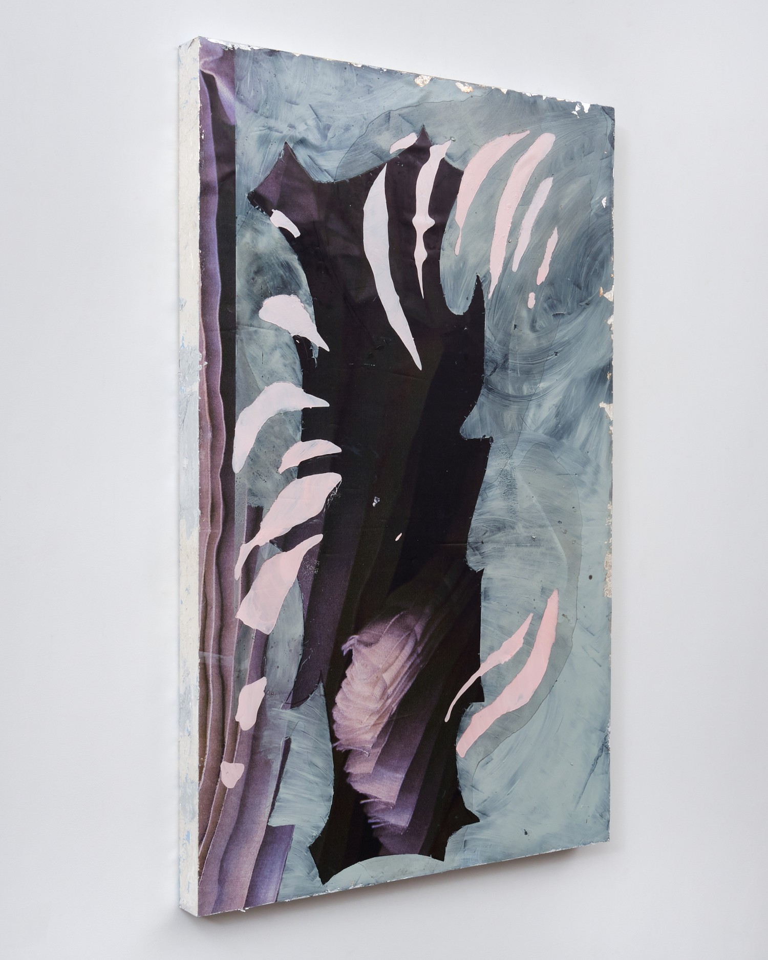 vinyl, oil paint, silicon, silver leaf, silk
