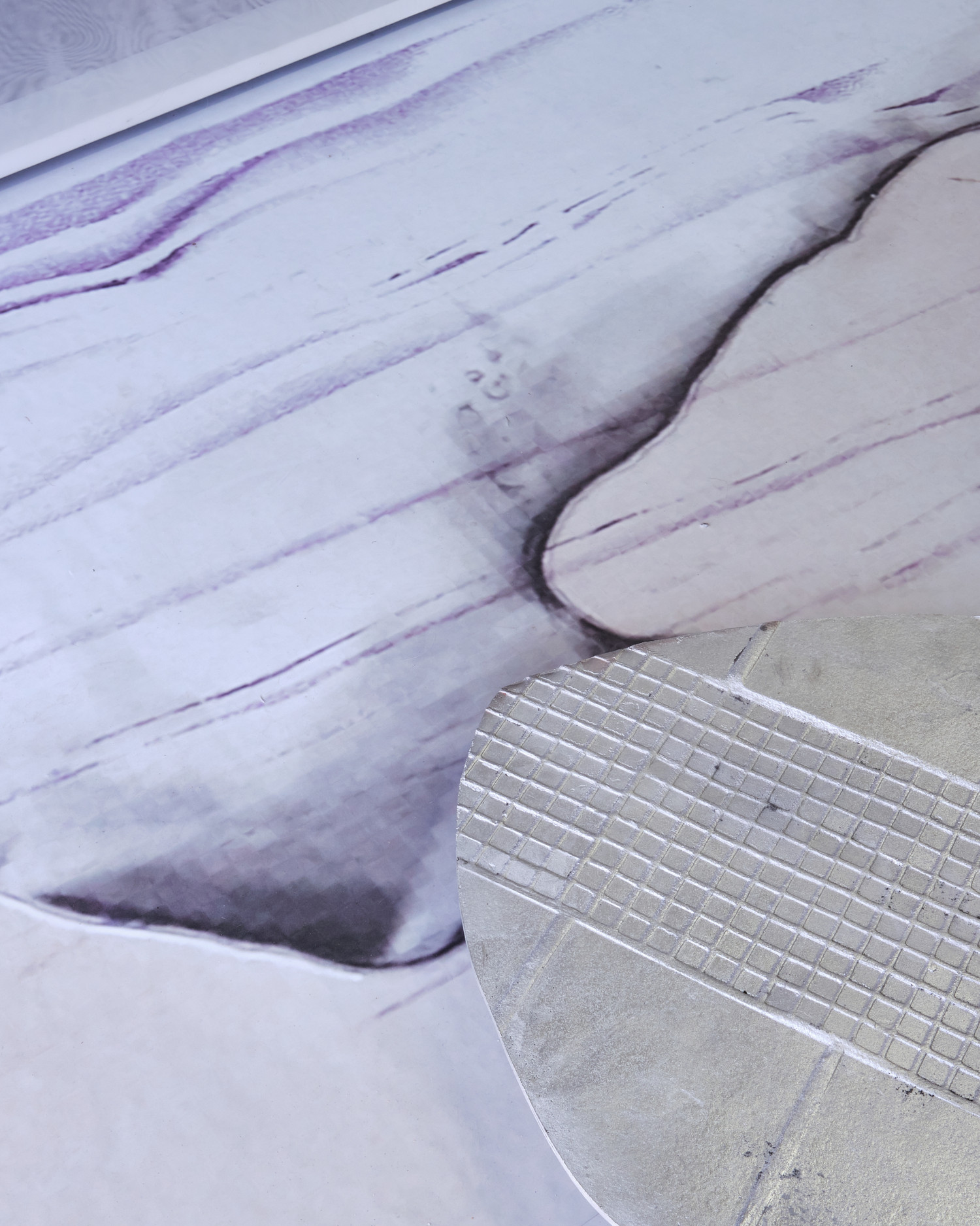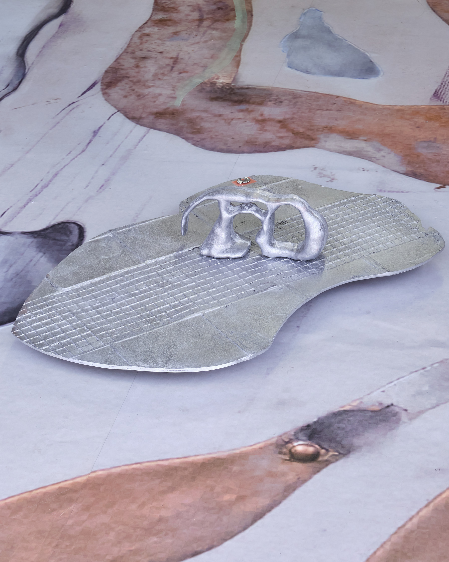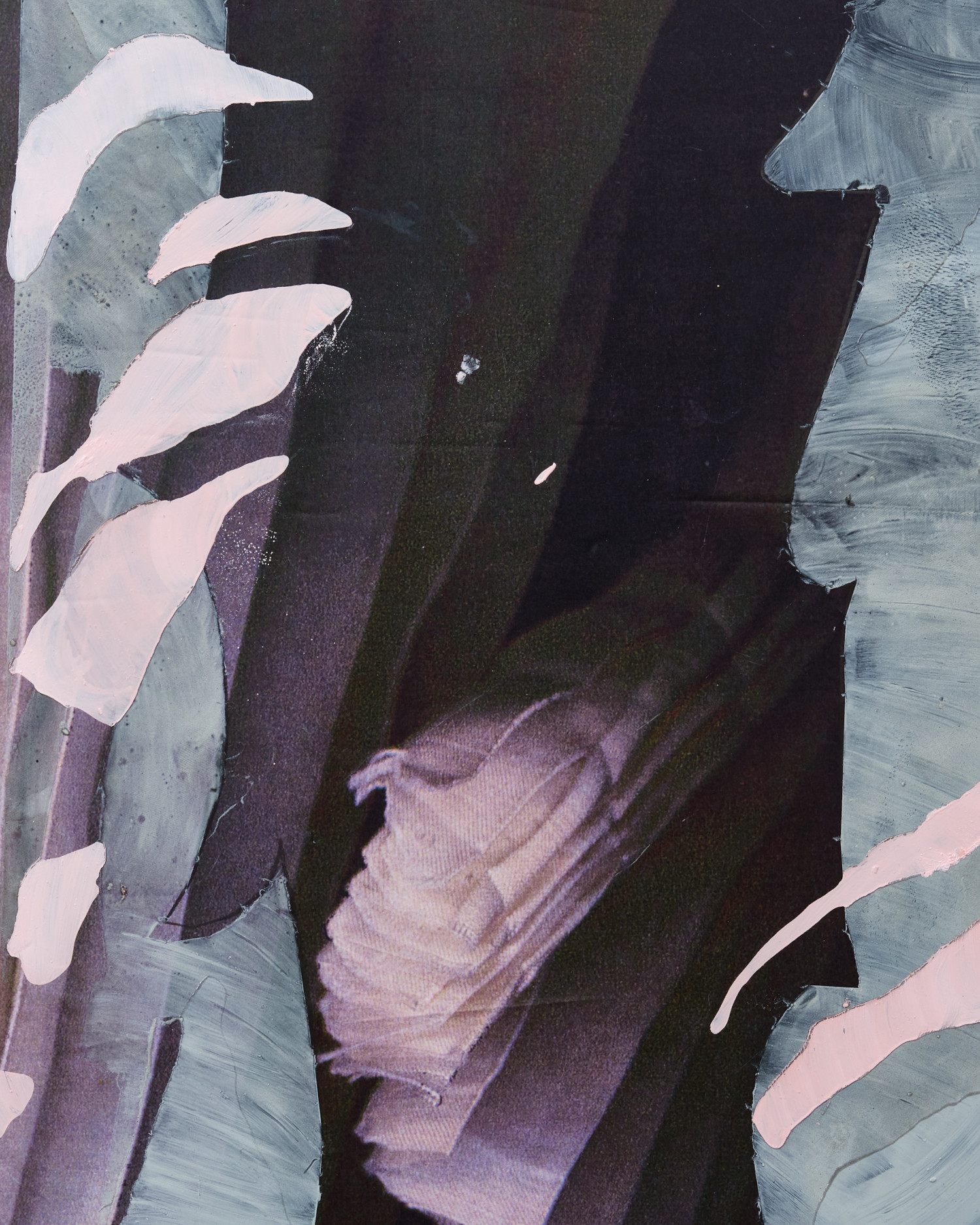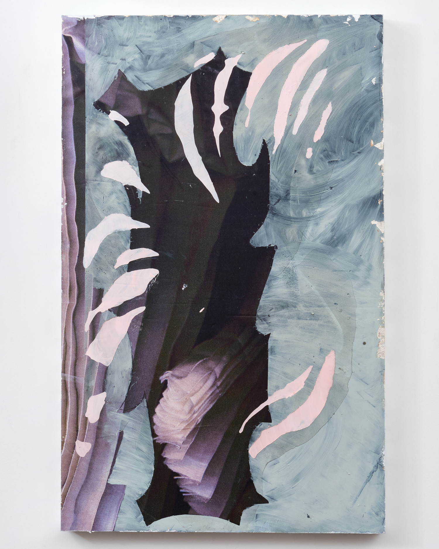 vinyl, oil paint, silicon, silver leaf, silk