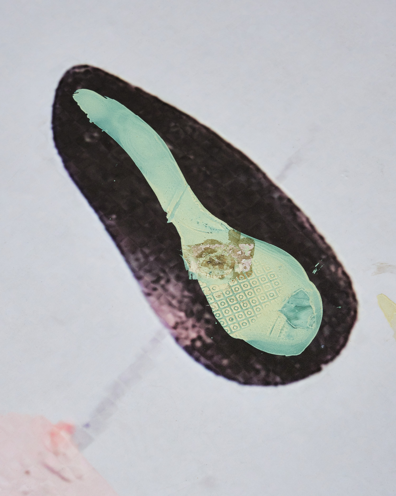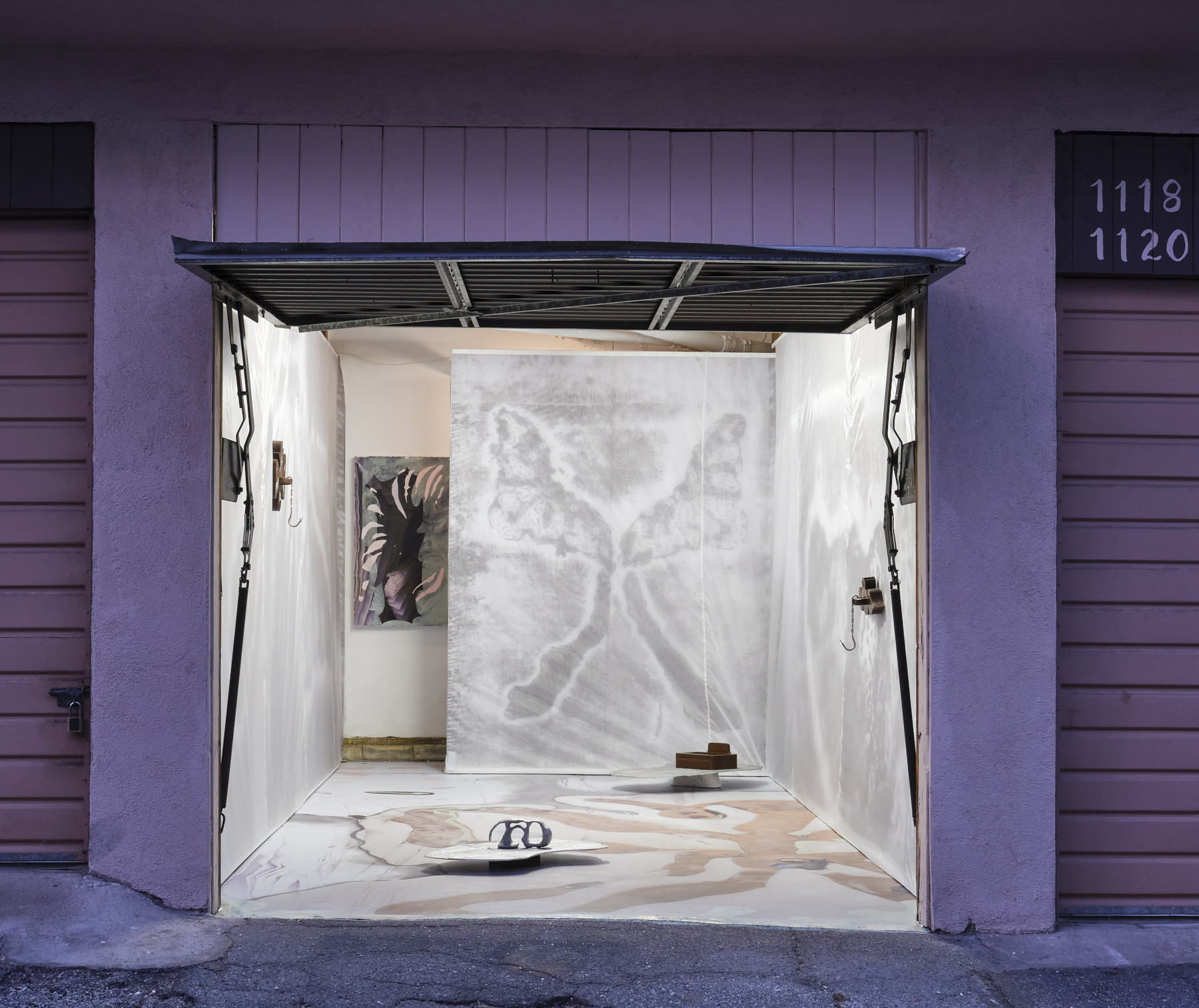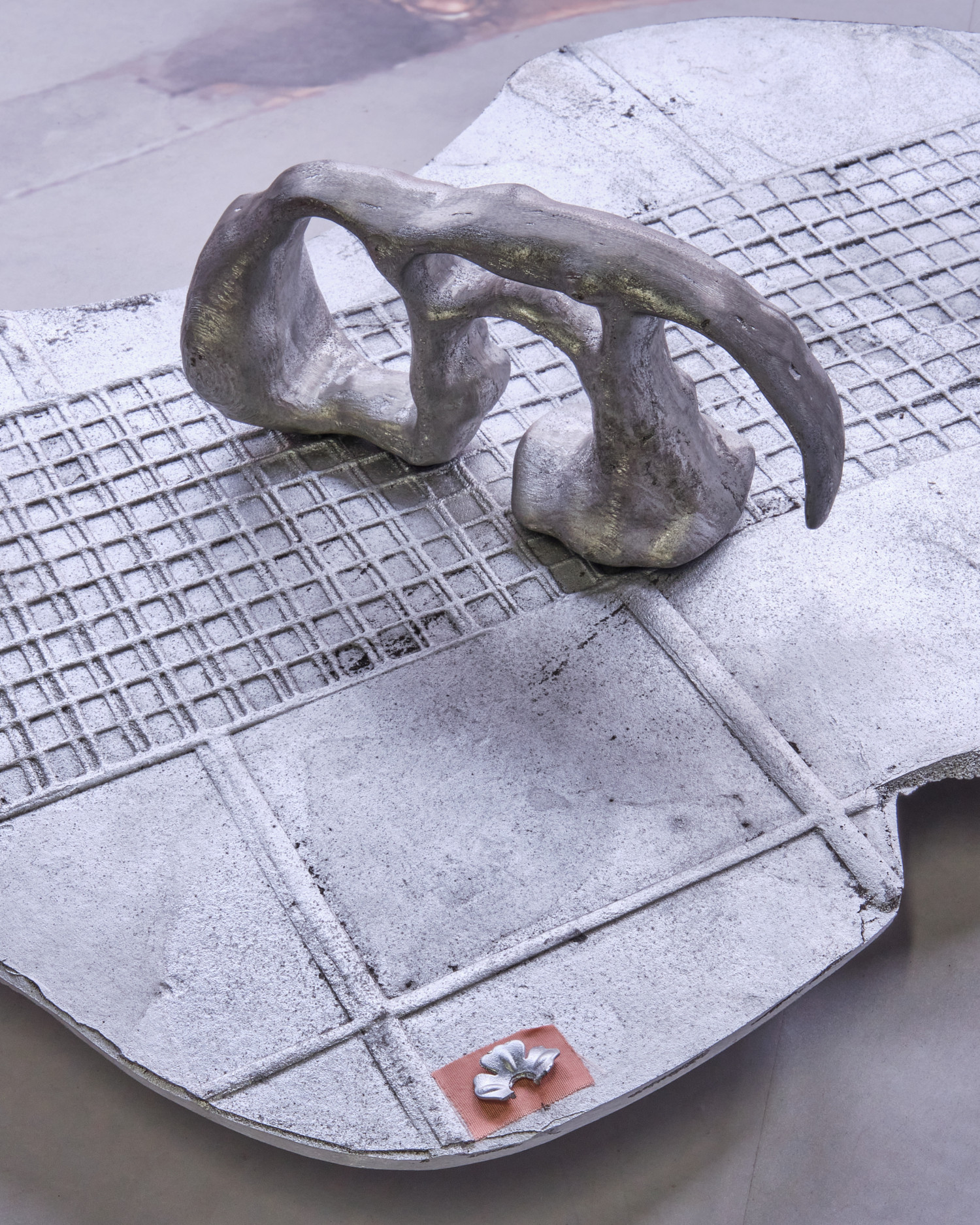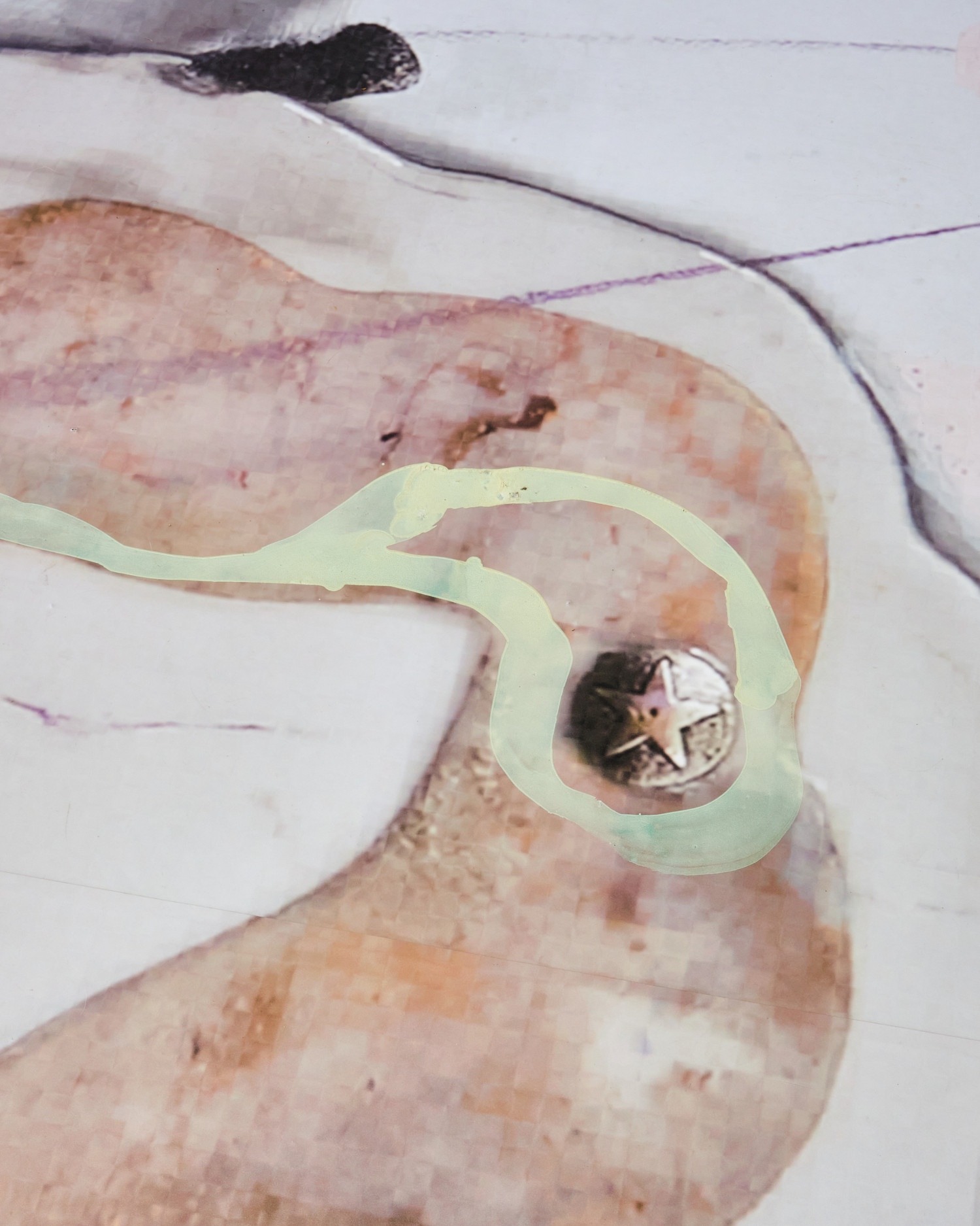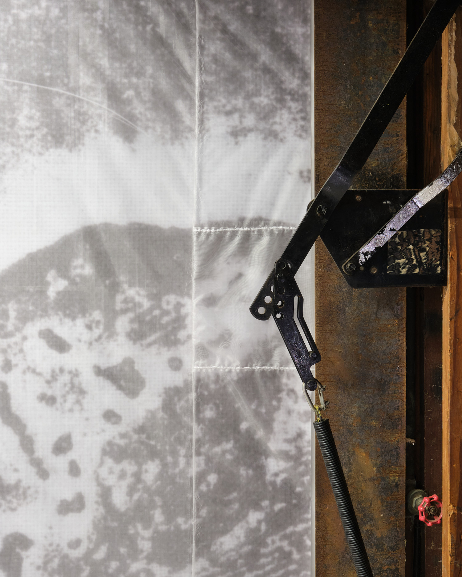 vinyl, oil paint, silicon, silver leaf, silk