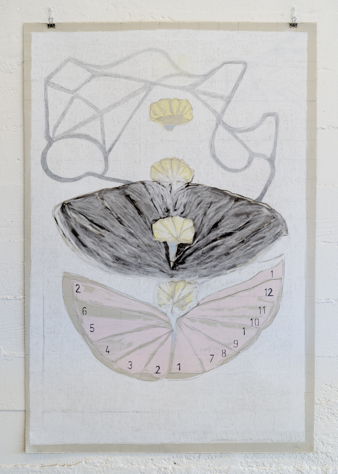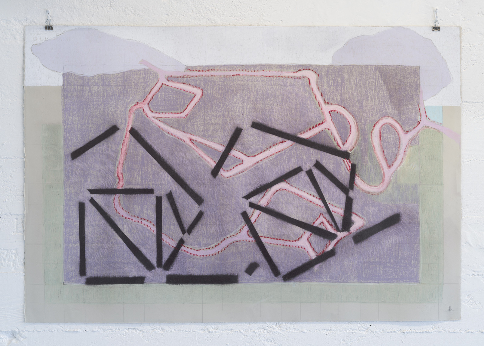 graphite, pastel, charcoal, enamel paint on Rives BFK