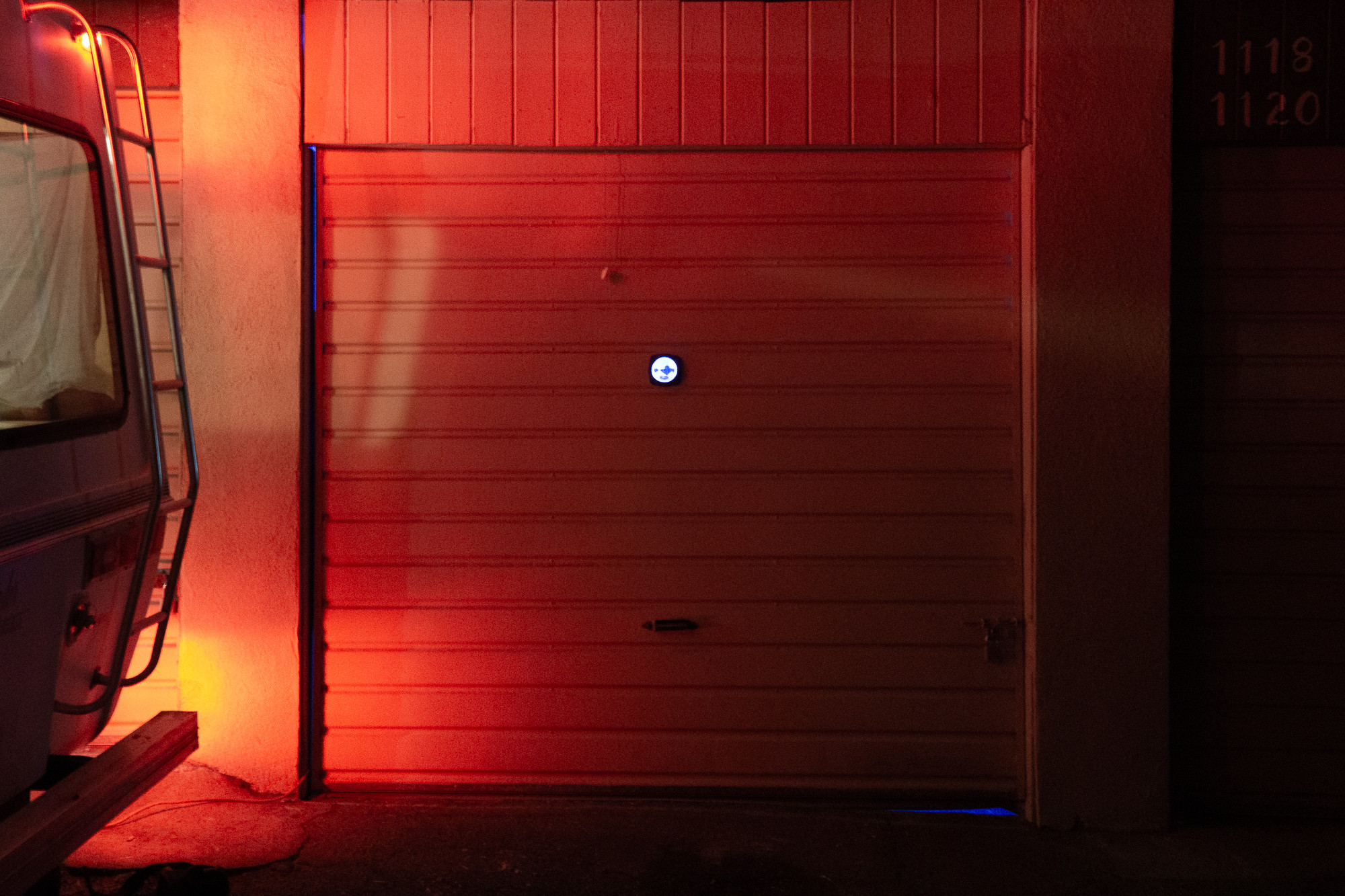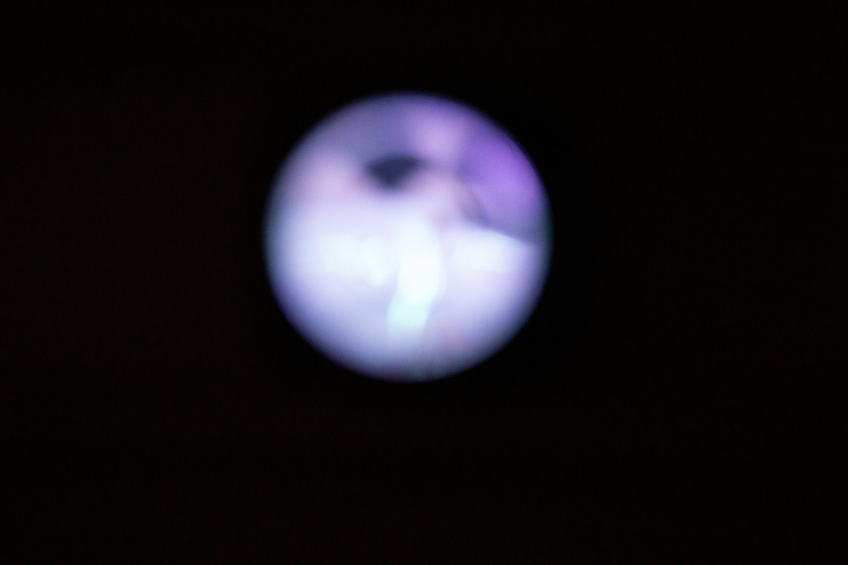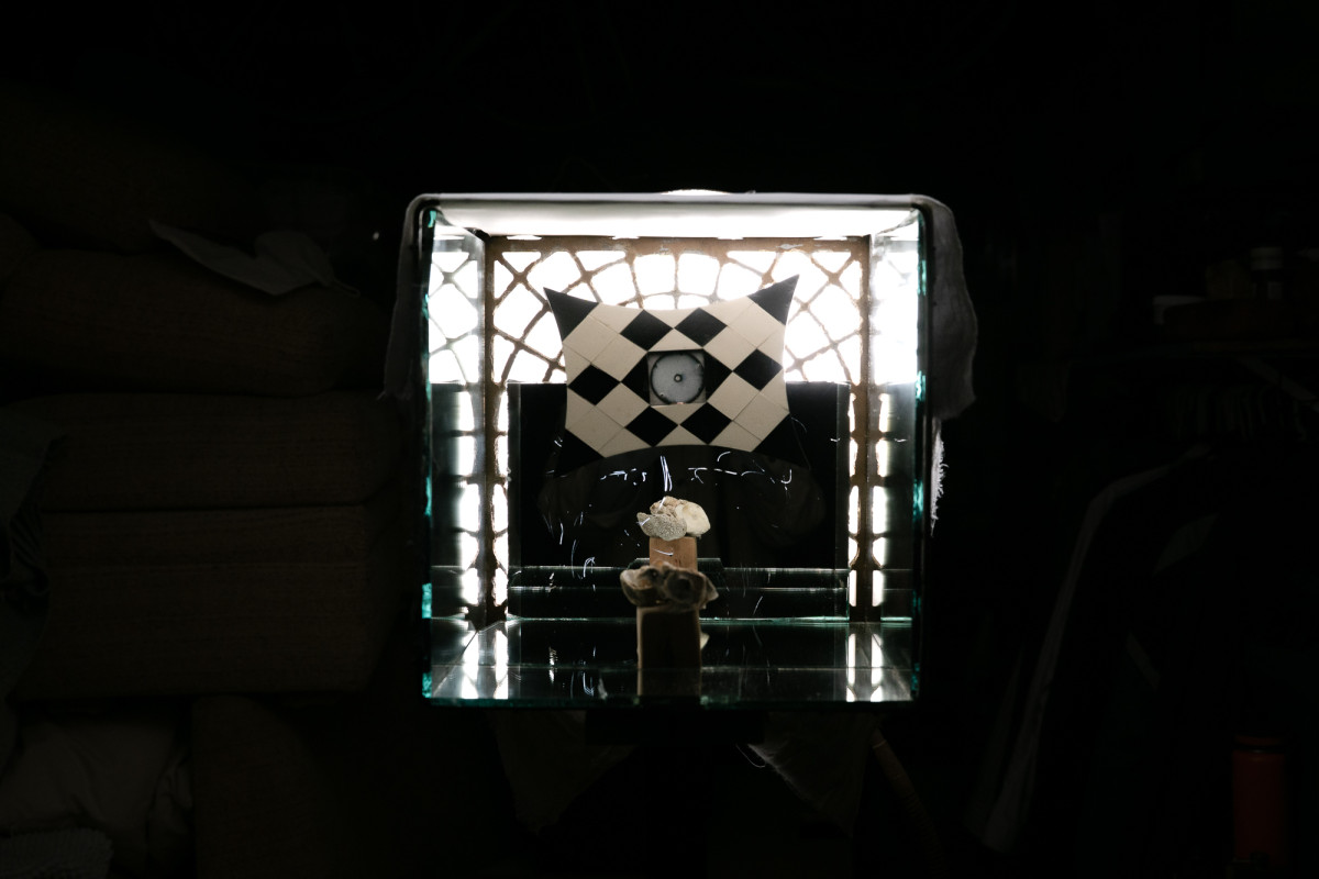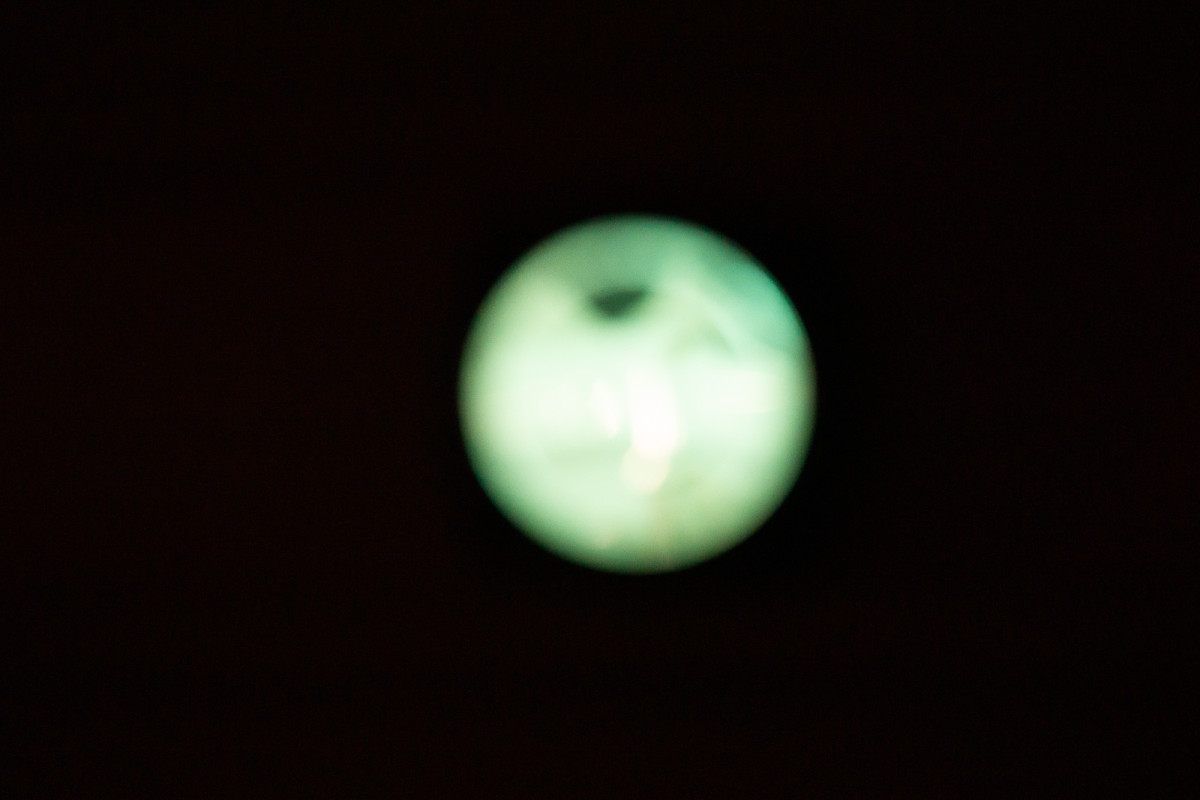 force majeure (a reflection of you within a reflection of me), 2026. scratched mirror, mood lighting. 12" × 12 " 12 "