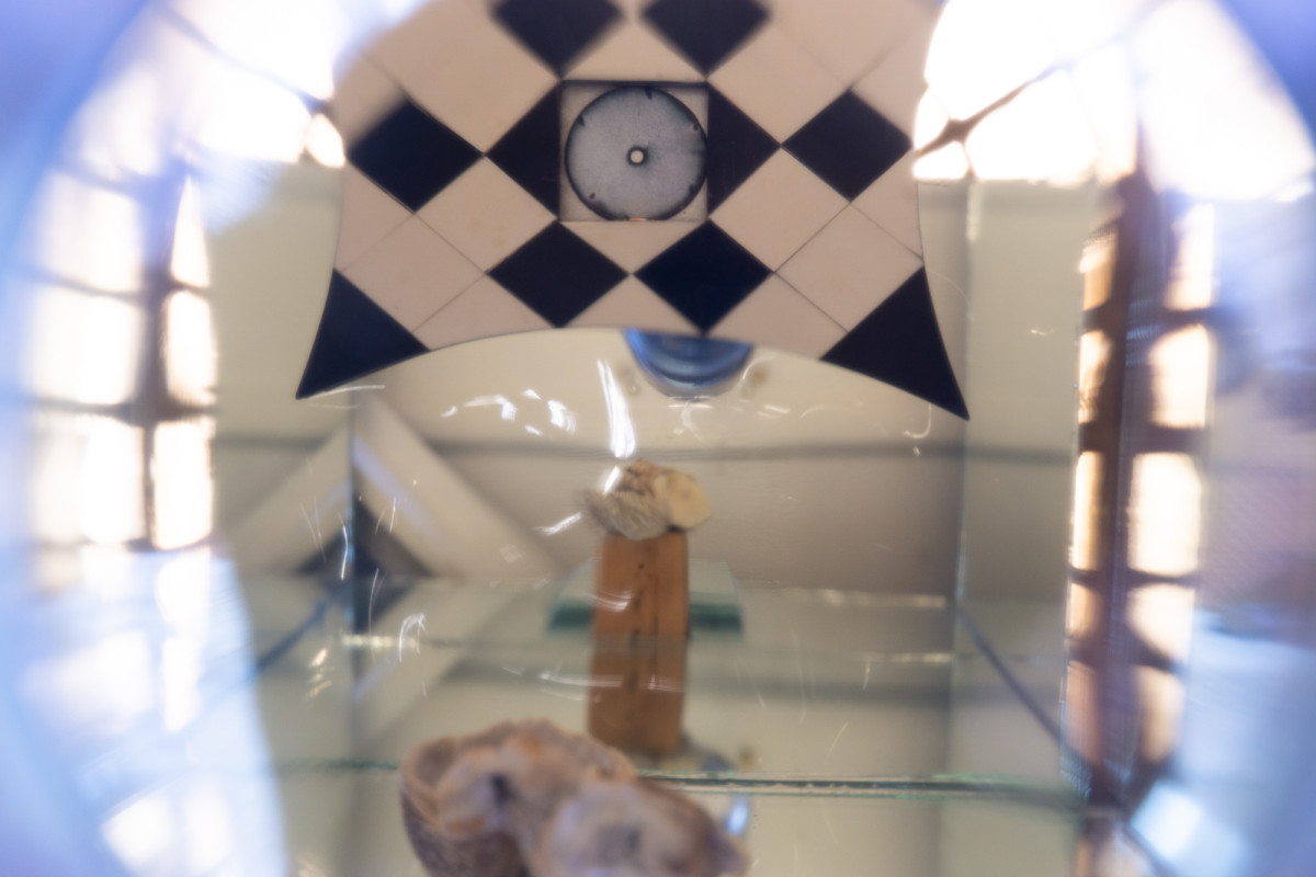 against time , 2024. found frame, gouache, clock face. 8.25 " × 6 "